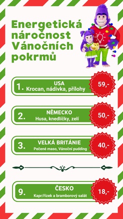 Česká kuchyně boduje kratší dobou tepelné úpravy a jednodušší přípravou. Pro srovnání, energie potřebná k přípravě štědrovečerní večeře ve všech českých domácnostech by elektrárně Temelín zabrala přibližně pět hodin, zatímco na všechny americké krocany pečené na Štědrý den by musela vyrábět elektřinu nepřetržitě více než tři týdny.