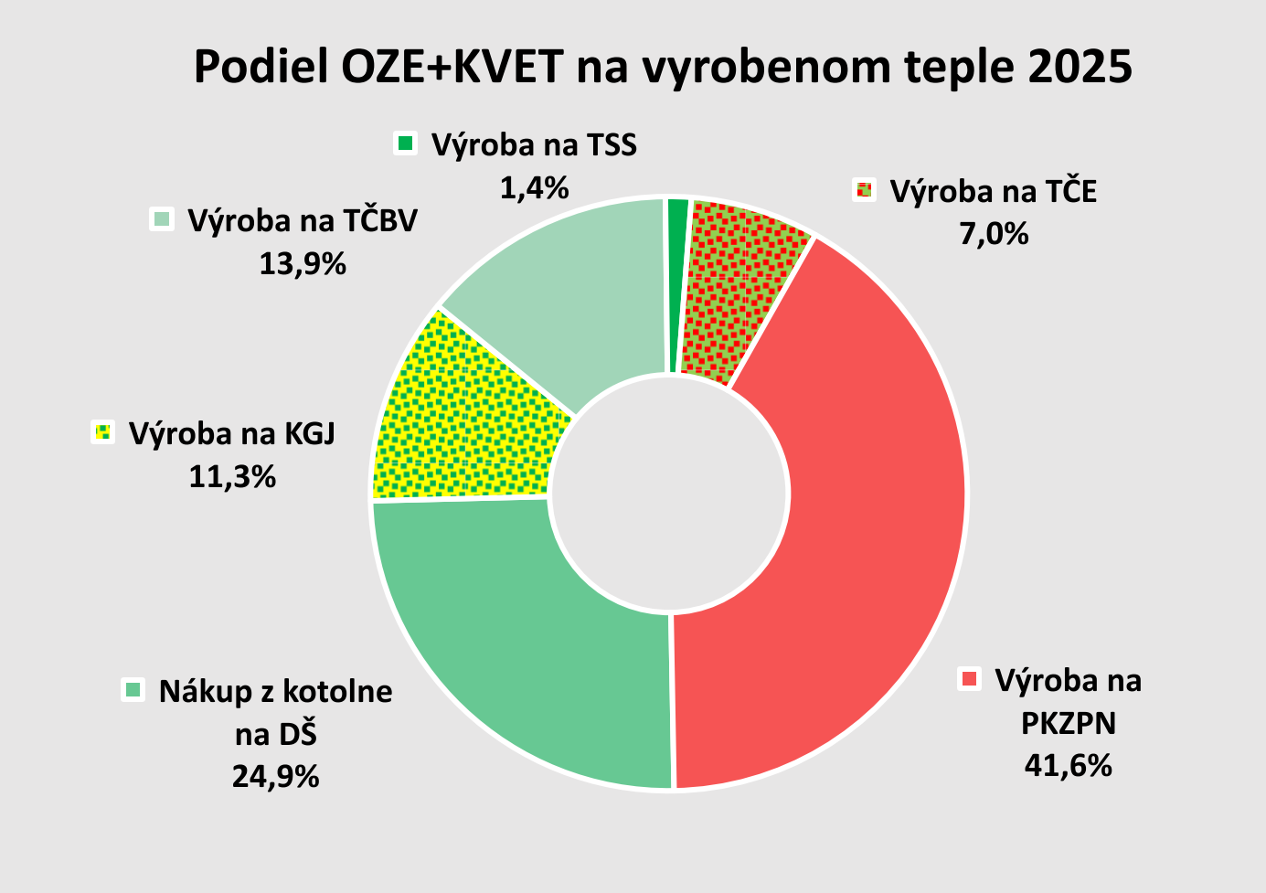 Účelom technológií na využívanie OZE je plnenie legislatívnej podmienky pre dosiahnutie 50,0% podielu vyrábaného tepla na báze OZE, resp. OZE + KVET, ktorú budú CZ pre SCZT mesta Prievidza plniť, aby systém mohol byť považovaný za „účinné centralizované zásobovanie teplom“. Na obr. 4 je priebeh potreby tepla a jeho krytie zdrojmi v SCZT PTH Prievidza.