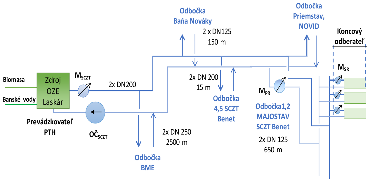 Obr. 6 Schéma výroby a distribúcie tepla v SCZT PTH Laskár – Nováky