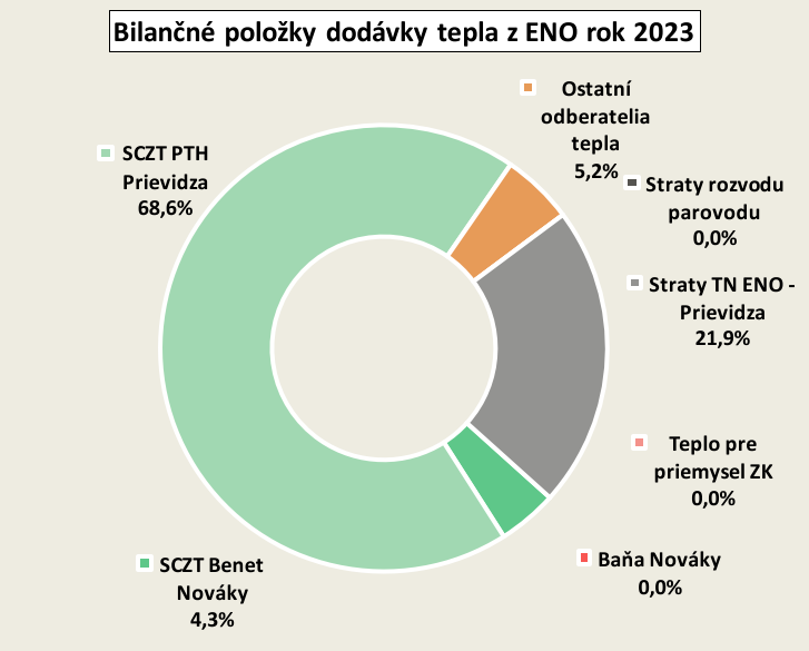 Koncom roka 2023 odstavil zdroj Slovenských elektrární, a.s. Bratislava (SE), odštepný závod Elektrárne Nováky (ENO) dodávku tepla do tepelného napájača 2×DN600 ENO-Prievidza (TN). Príčinou bolo ukončenie výroby elektriny vo všeobecnom hospodárskom záujme (VHZ) z domáceho uhlia. Historicky bolo množstvo dodávaného tepla približne 55,5 GWh, t.j. 0,78 % z celkovej spotreby energie v domácom uhlí (7,0 TWh). Po odpojení priemyslu a vojska v lokalite ENO a po stanovení termínu ukončenia výroby elektriny z domáceho uhlia štát „de facto“ rozhodol o odstavení tepla z ENO do Prievidze. Ako náhrada zdroja KVET ENO boli vybudované celkovo 4 centrálne zdroje (CZ) tepla pri lokalitách zásobovaných teplom, pričom SCZT v mestách Prievidza, Nováky a v obci Zemianske Kostoľany zostali zachované. Teplo sa vyrába na báze OZE a ZPN. Pre dodávku tepla z CZ sa využívajú časti trasy TN pre nové TN 2×DN300 z CZ KVET Cígeľ do Prievidze a TN 2×DN200 zo zdroja Laskár do Novák. V obci Zemianske Kostoľany je inštalovaný CZ tepla na ZPN.